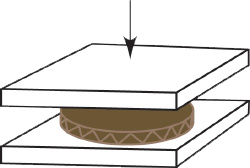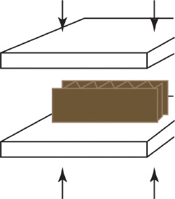Vid bestämning av plankrosstrycket belastas en wellpappskiva mellan två planparallella plattor. Det maximala tryck som wellpappskivan upptar innan wellskiktet trycks.